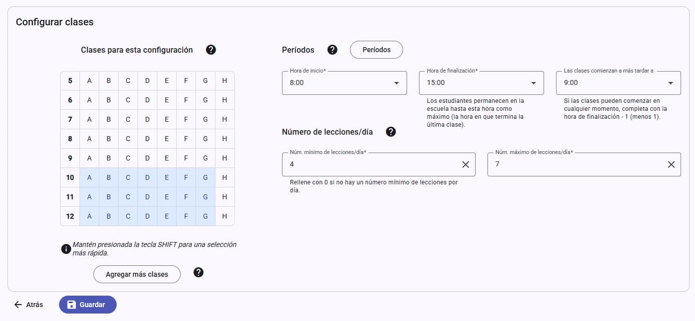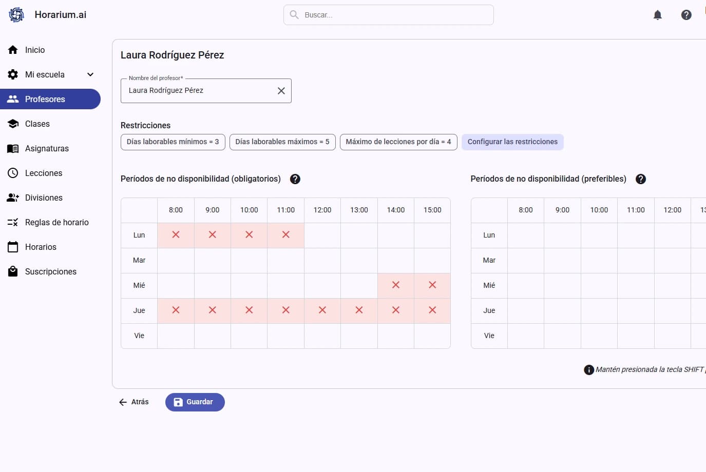 Nuestra interfaz intuitiva le permite introducir datos rápidamente y le ofrece flexibilidad para personalizar los horarios según sus necesidades.
