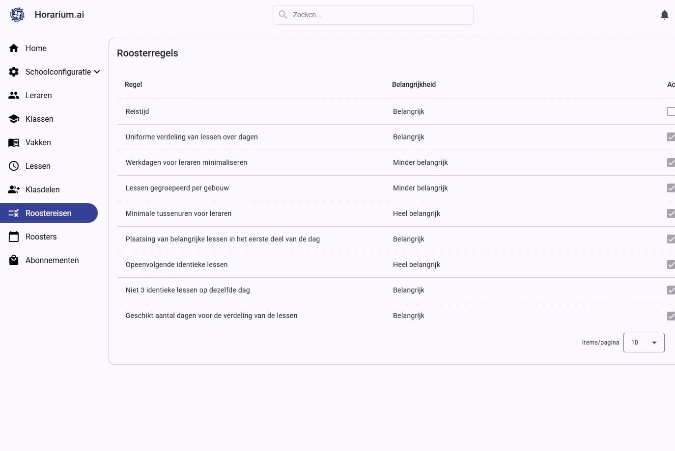 Zodra het rooster is gegenereerd, ontvangt u ook een rapport met alle beperkingen die niet konden worden nageleefd. Indien nodig kunt u het rooster handmatig aanpassen of opnieuw genereren. Tot slot kunt u het exporteren naar PDF of Excel.