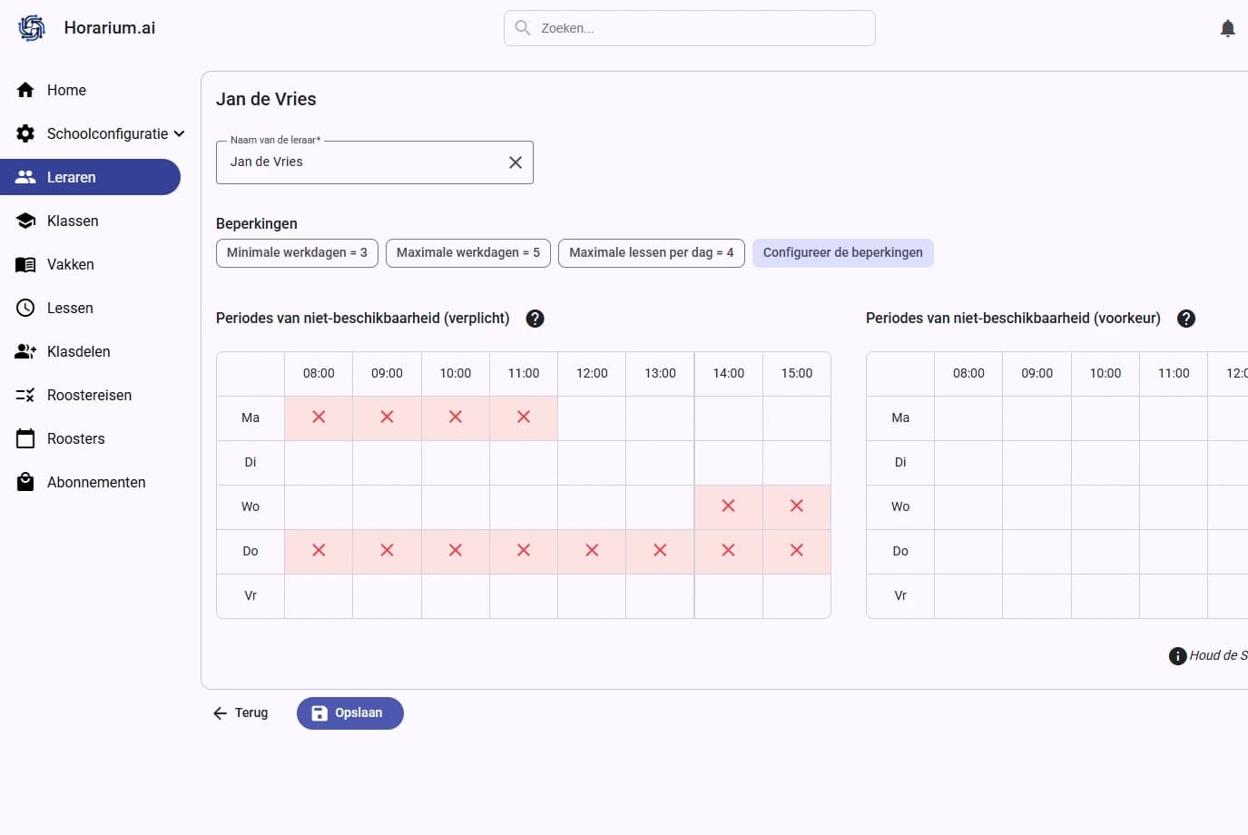 Kan ik het rooster genereren, zelfs met de specifieke behoeften of beperkingen van onze school?