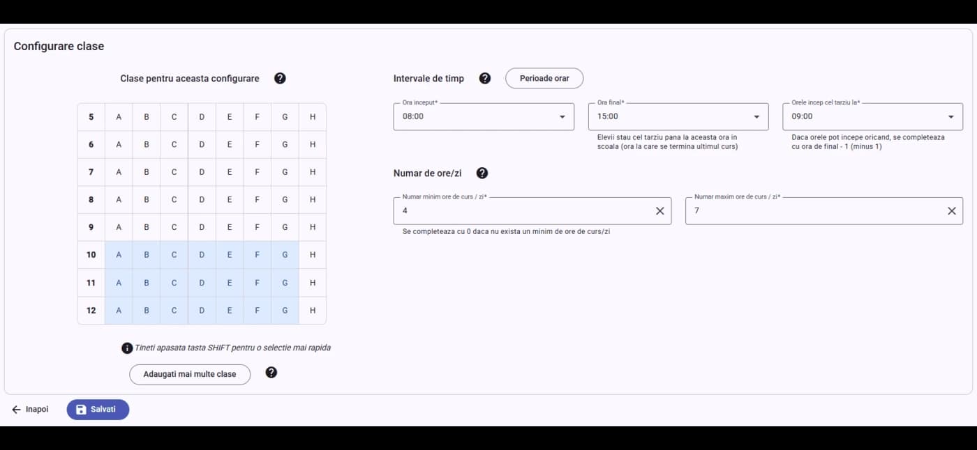 - Opțiunea de a vizualiza simultan orarele elevilor și ale profesorilor