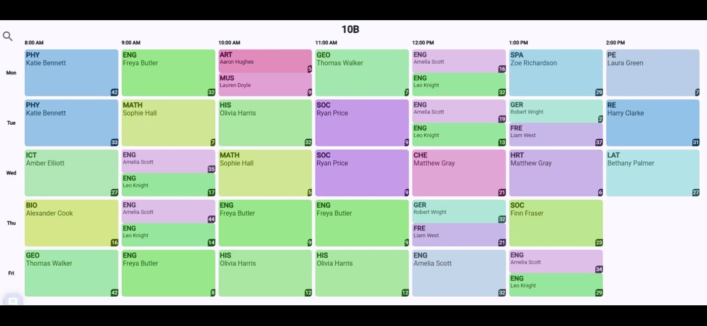 - Zunächst einmal machte die einfache Bedienung einen großen Unterschied. Die Oberfläche ist intuitiv und ermöglicht es, Stunden, Fächer und Zeiten schnell und unkompliziert einzugeben. In wenigen Minuten kann der gesamte Wochenplan erstellt werden.Rogerio Vidal Da SilvaEmeief Magdalena Pisa, Itapemirim, ES, Brasilien